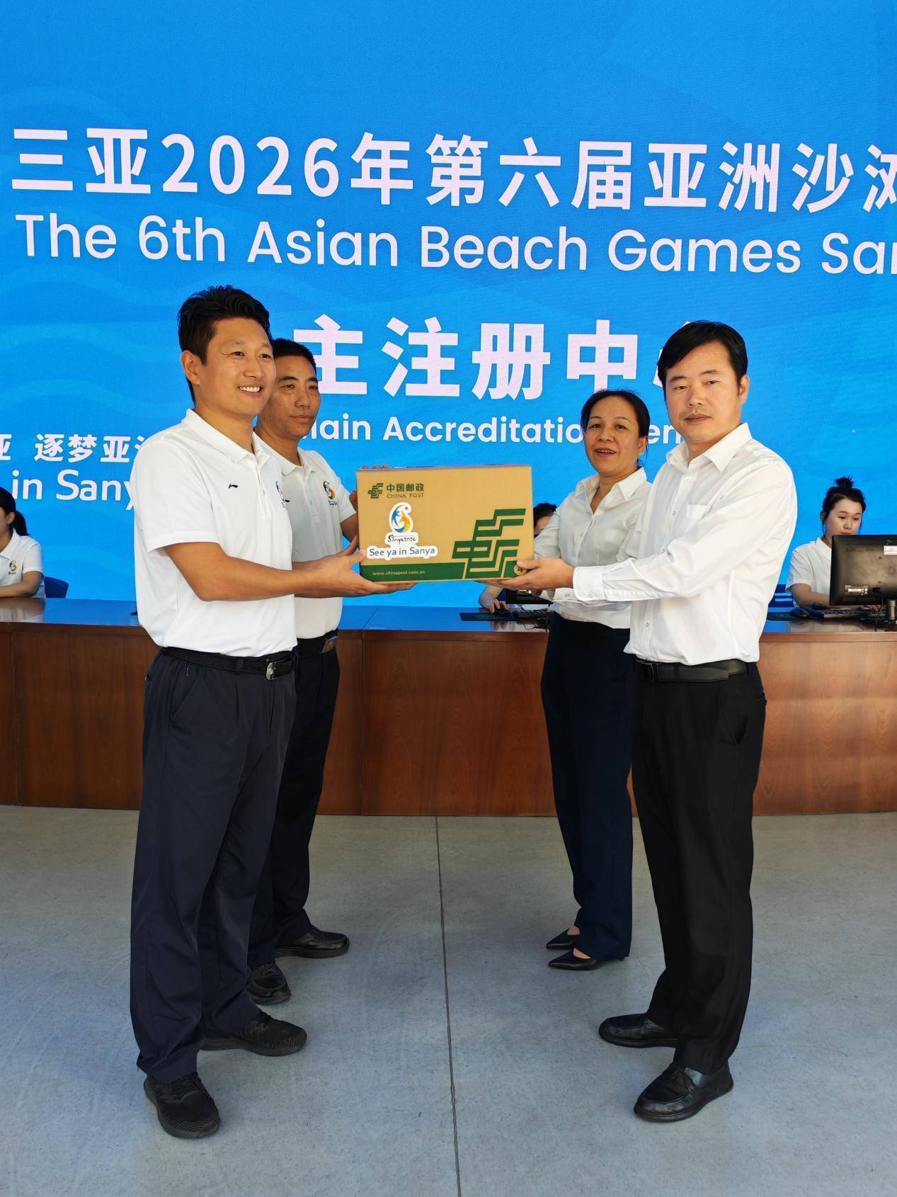 三亚亚沙会组委会将首批身份注册卡交给邮政递送。高娴摄